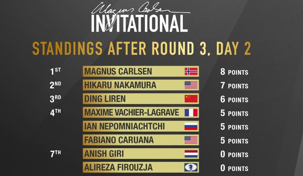 Այդպիսով, կայացած 3 տուրից հետո մրցաշարային աղյուսակը 8 միավորով գլխավորում է աշխարհի չեմպիոն Մագնուս Կառլսենը: Երկրորդ տեղում ամերիկացի Հիկարու Նակամուրան է՝ 7 միավոր: Դին Լիժենն այսօրվա հաղթանակից հետո վաստակեց 6 միավոր և մեկով առաջ անցավ ամերիկացի Ֆաբիանո Կարուանայից, Մաքսիմ Վաշյե-Լագրավից և Յան Նեպոմյաշչիից: Անիշ Գիրին ու իրանցի Ալիռեզա Ֆիրուջան առայժմ միավոր չեն վաստակել: