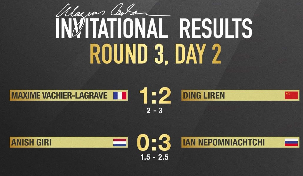 Ռուսաստանցի Յան Նեպոմյաշչին 2,5:1,5 հաշվով հաղթեց նիդերլանդցի Անիշ Գիրիին և իր միավորների քանակն ավելացրեց երեքով: