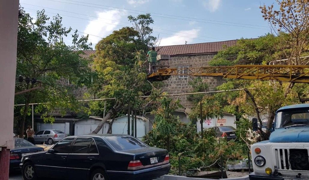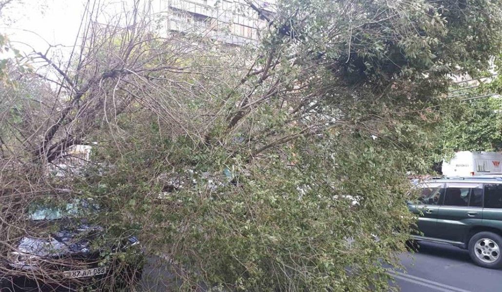 Կարճատեւ քամու պատճառով Երեւանի կենտրոնում 4 ծառ է տապալվել