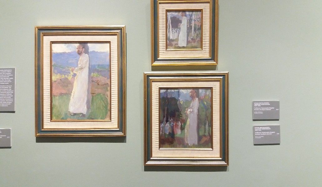 ՀՀ ազգային պատկերասրահի տնօրենի պաշտոնակատար Մարինա Հակոբյանի խոսքով, գեղանկարչի «Կոմիտասը»,«Քրիստոսը և փարիսեցիները», «Արարատը», «Մեր փողոցը Վաղարշապատում» գլուխգործոցներից բացի, ցուցադրված են էտյուդներ ու գծապատկերներ: Ըստ Տիկին Հակոբյանի, ցուցադրության նպատակն էր մեծադիր կտավների և էտյուդային էսքիզների համադրումը, մտահղացումից՝ իրականացում: Ցուցադրված են նաև նոթատետրեր, նկարչի նամակագրությունից արժեքավոր նմուշներ ու պատմական արժեք ունեցող եզակի լուսանկարներ: