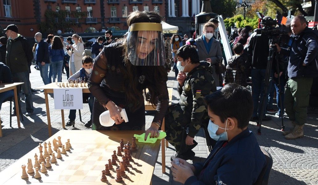 Աջակցիր «Ա1+»-ինՀայկական շախմատի առաջատար Լևոն Արոնյանն այսօր Երևանի Շառլ Ազնավուրի անվան հրապարակում անցկացրեց «Մատ տեռորին» խորագիրը կրող բարեգործական միաժամանակյա խաղաշար, որից ստացված ողջ գումարը փոխանցվեց «Հայաստան» համահայկական հիմնադրամին: Նա և արցախցի գրոսմայստեր Մանուել Պետրոսյանը հանդիպեցին Արցախից և Հայաստանից ընտրված 20 տաղանդավոր երեխաների հետ։