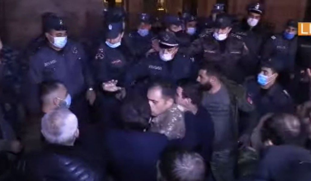 Ցուցարարները հայհոյանքներ էին հնչեցնում Նիկոլ Փաշինյանի հասցեին, մեղադրում դավաճանության մեջ, բողոքում, որ այդ որոշումն ընդունել է առանց ժողովրդի հետ խորհրդակցելու, ուրանալով զոհերի արյունը: Նրանք կոտրեցին կառավարության շենքի ապակիները, դռները ու ներխուժեցին շենք: Ավելի ուշ շենք եկավ ԲՀԿ խմբակցության պատգամավոր Իվետա Տոնոյանը եւ փորձում էր զսպել ցուցարարներին, երբ նրանք ավերածություններ էին անում կառավարության սենյակներում: