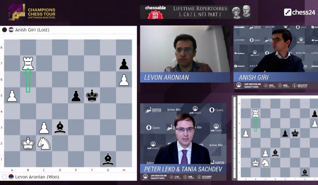 Աջակցիր «Ա1+»-ինԱյսօր մեկնարկեց առցանց անցկացվող արագ շախմատի Airthings Masters մրցաշարը, որին մասնակցում են 12 գրոսմայստեր, այդ թվում Հայաստանի ուժեղագույն շախմատիստ Լևոն Արոնյանը: