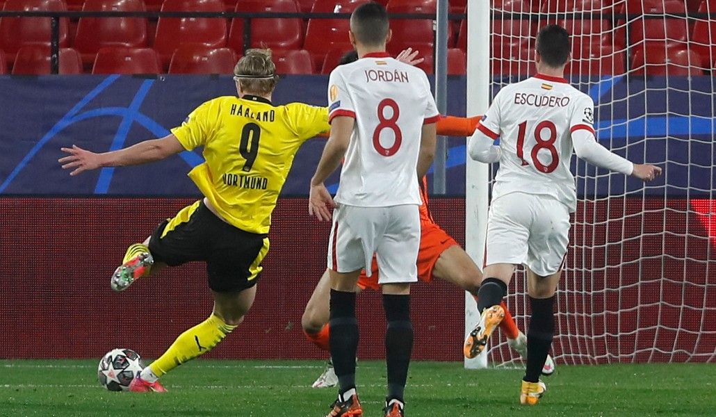 Երկրորդ խաղում իսպանական «Սևիլյան» իր հարկի տակ ընդունեց Դորտմունդի «Բորուսիային»: Դաշտի տերերը մինչ այդ 9 անընդմեջ հաղթանակ էին տարել ազգային առաջնությունում՝ այդ խաղերում բաց թողնելով ընդամենը մեկ գոլ: Այդ ցուցանիշը, ինչպես նաև արդեն 7-րդ րոպեին տանտերերի խփած գոլը, չընկճեց հյուրերին: Նրանք նախ արագ հավասարացրին հաշիվը, իսկ մինչև առաջին խաղակեսի ավարտը նորվեգացի հրաշամանուկ Էրլինգ Հոլանդի տաղանդի հաշվին խփեցին ևս երկու գնդակ՝ գերակատարելով իրենց պլանը: Դաշտի տերերը երկրորդ խաղակեսում ընդամենը կարողացան նվազագույնի հասցնել հաշվի տարբերությունը՝ 2:3: