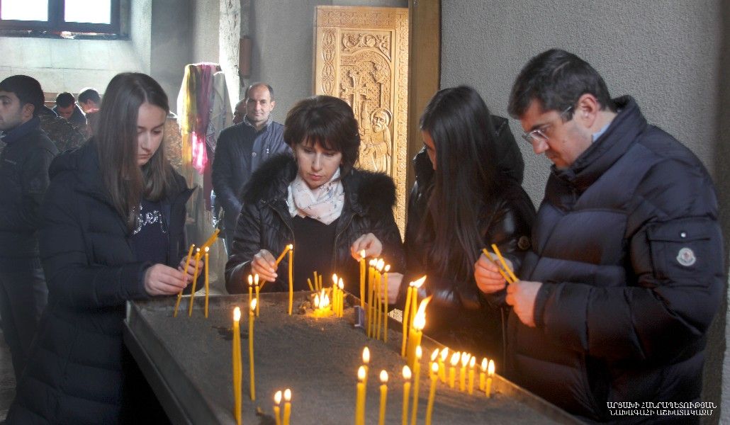 Աջակցիր «Ա1+»-ինԱրցախի Հանրապետության նախագահ Արայիկ Հարությունյանն ընտանիքի անդամների հետ փետրվարի 21-ին Ամարասի վանքում մասնակցել է Արցախի հոգևոր թեմի առաջնորդ Գերաշնորհ Տ․ Վրթանես եպիսկոպոս Աբրահամյանի ձեռամբ մատուցված Սուրբ Պատարագին։