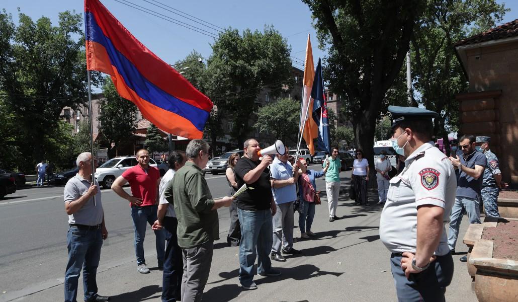 Համահայկական Ազգային Համաձայնություն (ՀԱՀ) շարժման անդամների բողոքի ակցիան ՀՀ վարչապետի պաշտոնակատար Նիկոլ Փաշինյանին հեռացնելու պահանջով նախագահի նստավայրի մոտ։