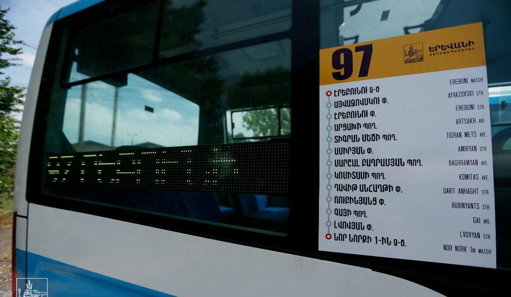 Աջակցիր «Ա1+»-ինԵրևանի քաղաքապետարանը տեղեկացնում է, որ վաղվանից՝ հուլիսի 1-ից, կոմպակտ դասի նոր ավտոբուսներով կսկսի իր աշխատանքը հ.97 երթուղին (այն կփոխարինի ավտոբուսային հ.37 երթուղուն):