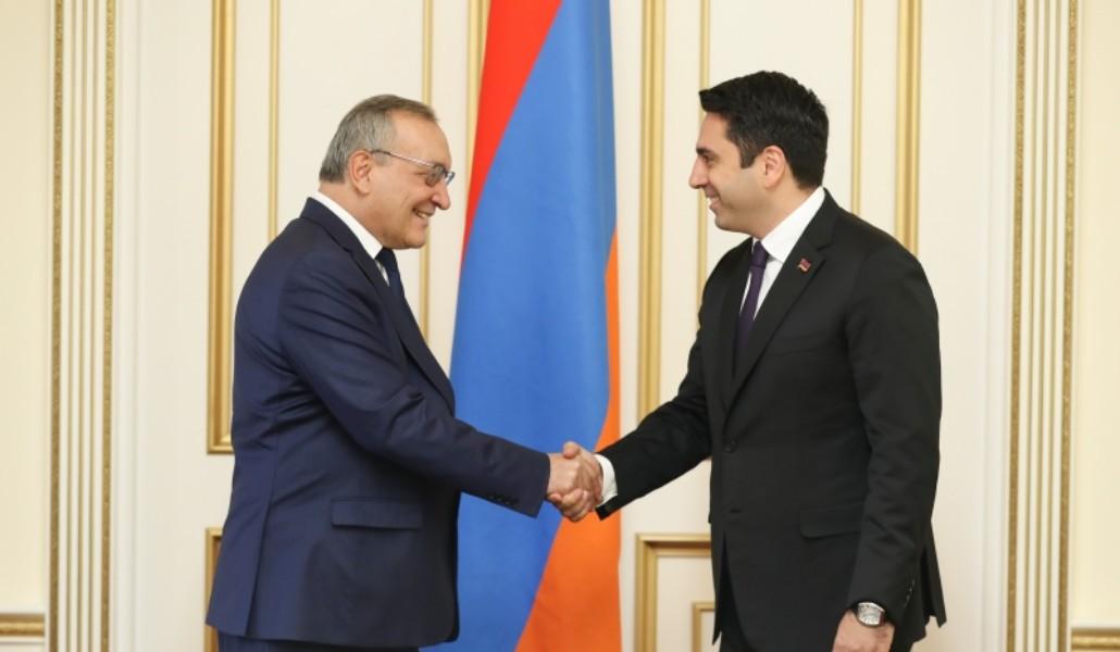 Ողջույնի խոսքում ՀՀ ԱԺ նախագահը կարեւորեց նոր պաշտոնում Արցախի իր պաշտոնակցի հետ առաջին պաշտոնական հանդիպումն անցկացնելու փաստը: Ալեն Սիմոնյանը նշեց, որ հայկական զույգ պետությունների միջեւ միասնականությունը հիմնարար արժեք է, որի պահպանումը պետք է մշտապես տեղ գտնի պետական եւ հանրային ռազմավարական ծրագրերում: ՀՀ ԱԺ նախագահը նաեւ հույս հայտնեց, որ երկու խորհրդարանները կշարունակեն արդյունավետ համագործակցել, ինչպես նաեւ, անհրաժեշտության դեպքում, կվերանայվեն փոխգործակցության նախկին պայմանավորվածությունները:
