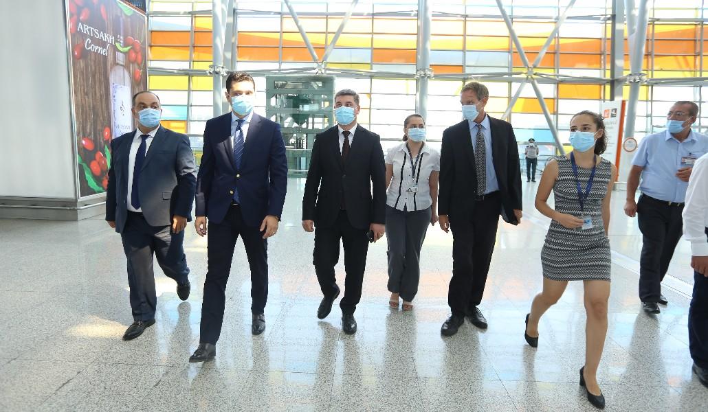 ՏԿԵ նախարարն այնուհետև «Զվարթնոց» միջազգային օդանավակայանում «Արմենիա» միջազգային օդանավակայաններ» ՓԲԸ գլխավոր մենեջեր Մարսելո Վենդեի և ոլորտի մյուս պատասխանատուների ուղեկցությամբ ճանաչողական շրջայց է կատարել ժամանման, մեկնման սրահներում, ուղևորների նստեցման և սպասարկման հարակից գոտիներում, ծանոթացել է նաև օդանավակայանի անվտանգության կառավարման կենտրոնի աշխատանքին։