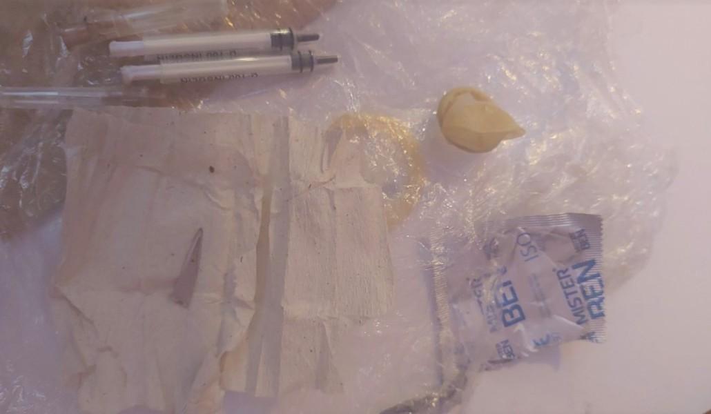 Զննության արդյունքում նրա հետանցքից հայտնաբերվել է փաթեթ, որում առկա են եղել մկրատի կոտրած ծայր և 2 ներարկիչ, իսկ տաբատի գրպանից՝ պահպանակ և մուգ դեղին ռեզինի կտոր։ Փաստերի առթիվ նախապատրաստվում են նյութեր: Նշանակվել է դատաքիմիական փորձաքննություն: