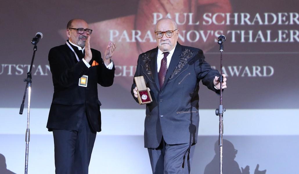 Իր խոսքի ընթացքում Հարություն Խաչատրյանը բեմ հրավիրեց փառատոնի պատվավոր հյուր՝ ամերիկացի նշանավոր սցենարիստ և ռեժիսոր Փոլ Շրեյդերին: Վերջինս Մարտին Սկորսեզեի «Տաքսիստ», «Կատաղած ցուլը», «Քրիստոսի վերջին գայթակղությունը» ֆիլմերի սցենարիստը, «Ամերիկյան ժիգոլո», «Միսիմա, կյանքը 4 մասից», «Քահանայի օրագիրը» և 2 տասնյակ այլ ֆիլմերի ռեժիսորն և 3 տասնյակ միջազգային կինոփառատոների դափնեկիր: «Ոսկե ծիրան» միջազգային կինոփառատոնի հիմնադիր տնօրենը Շրեյդերին հանձնեց փառատոնի «Փարաջանովյան թալեր» մրցանակը՝ կինոյում ունեցած մեծ ավանդի համար։ Շրեյդերը շնորհակալություն հայտնեց պարգևի համար։