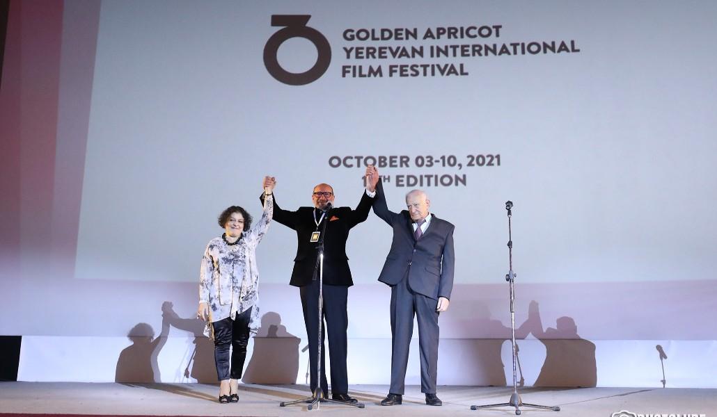 Երևանի «Ոսկե ծիրան» միջազգային կինոփառատոնի հիմնադիր տնօրեն Հարություն Խաչատրյանը շեշտեց՝ փառատոնը կայանում է բավականին բարդ ժամանակներում և շնորհակալություն հայտնեց այն իրականացնող երիտասարդ թիմին, ով չի վախենում դժվարություններից։ Խաչատրյանը բեմ հրավիրեց փառատոնի մյուս երկու համահիմնադիրներին՝ Սուսաննա Հարությունյանին և Միքայել Ստամբոլցյանին, և նրանք երեքով ազդարարեցին փառատոնի մեկնարկը։