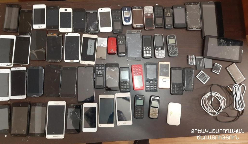 Զննության արդյունքում սառնարանի ետնամասում պատրաստված թաքստոցից հայտնաբերվել են 55 հատ բջջային հեռախոս, բջջային հեռախոսի 5 մարտկոց և 3 USB լար: