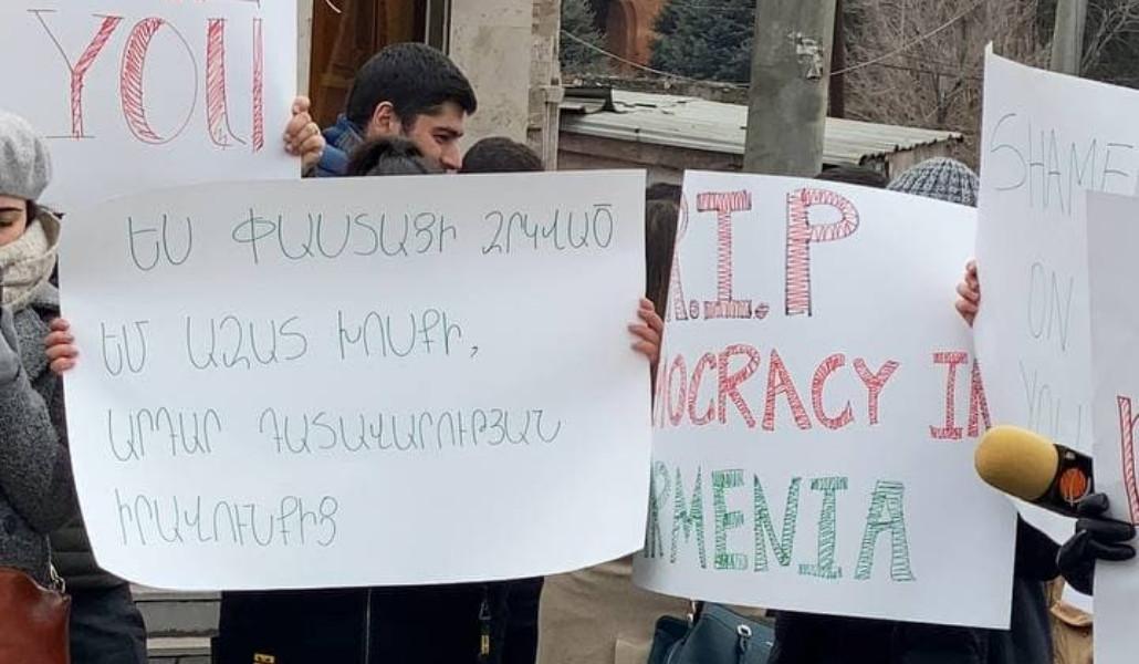 Աջակցիր «Ա1+»-ինՓետրվարի 11-ին, Հայաստանում Եվրոպական միության պատվիրակության գրասենյակի առջև տեղի ունեցավ ՀՅԴ Հայաստանի երիտասարդական միության բողոքի ակցիան: