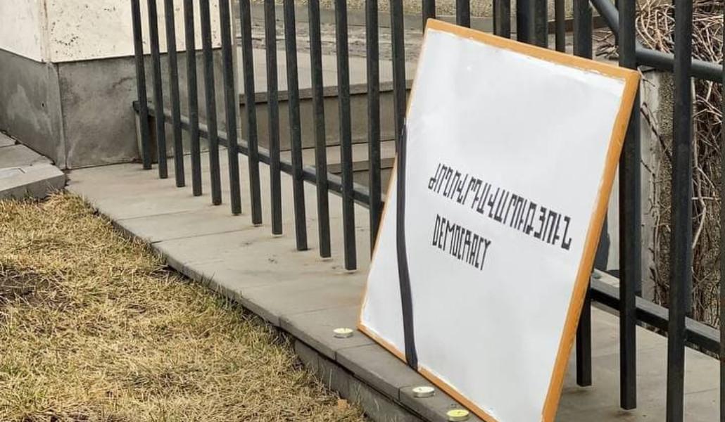 «Հարգանքի տուրք Հայաստանում ժովորդավարության հիշատակին» խորագրով ակցիայի մասնակիցները նաև իրենց բողոքի ձայնը բարձրացրեցին Արցախի Հանրապետության նկատմամբ թուրք-ադրբեջանական ագրեսիան չդատապարտելու, պատերազմական հանցագործությունների, այդ թվում քիմիական զենքի գործածության իրողությունը լռության մատնելու և մեր հազարավոր հայրենակիցների կյանքի իրավունքը ոտնահարելու փաստը չդատապարտելու կապակցությամբ։