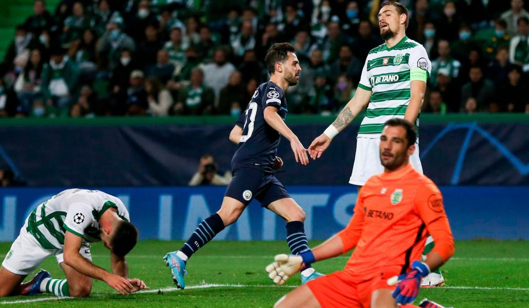 Օրվա երկրորդ խաղում անգլիական «Մանչեսթեր Սիթին» Լիսաբոնում պարզապես ջախջախեց տեղի «Սպորտինգին»: Առաջին խաղակեսում հյուրերը չորս անպատասխան գոլ խփեցին, իսկ երկրորդում` միայն մեկ: Անգլիական թիմի կազմում հեթ-տրիկի հեղինակ դարձավ պորտուգալացի Բերնարդու Սիլվան: