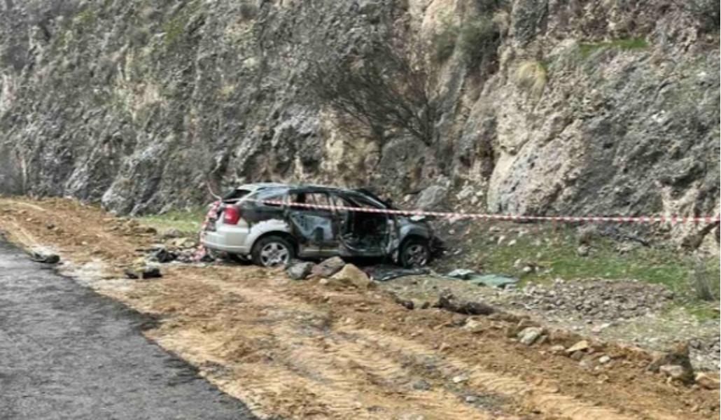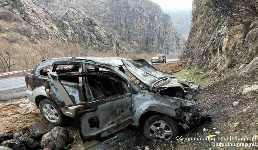 Մեքենան բախվել է ժայռին, գլխիվայր շրջվել և բռնկվել․ լուսանկարներ