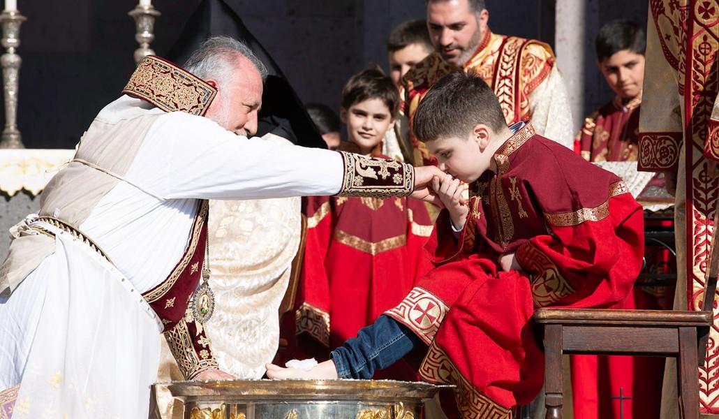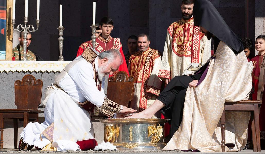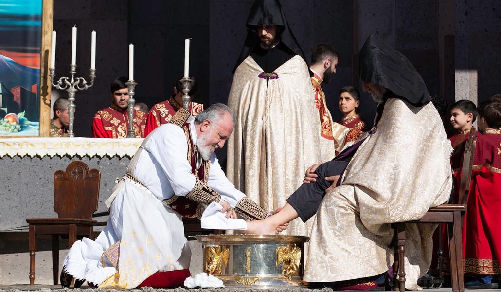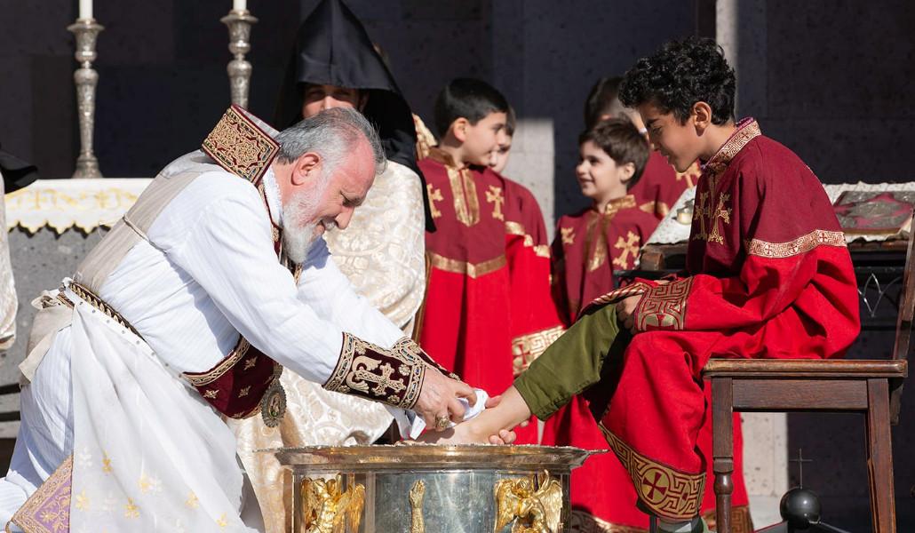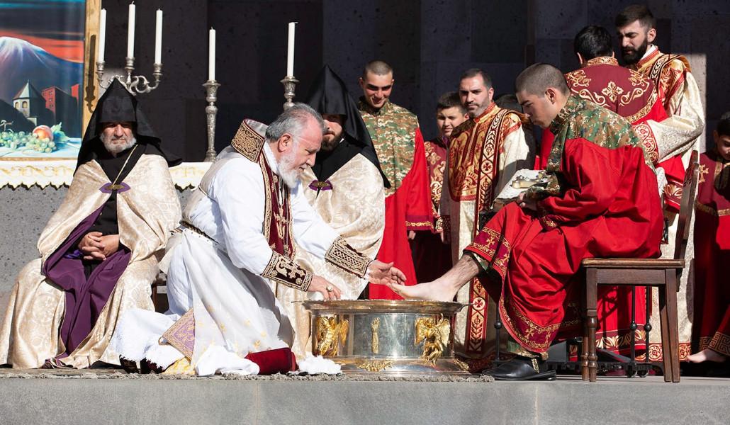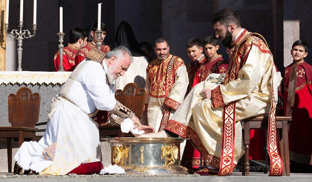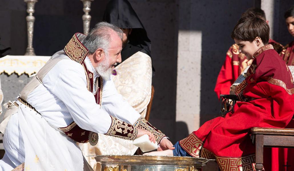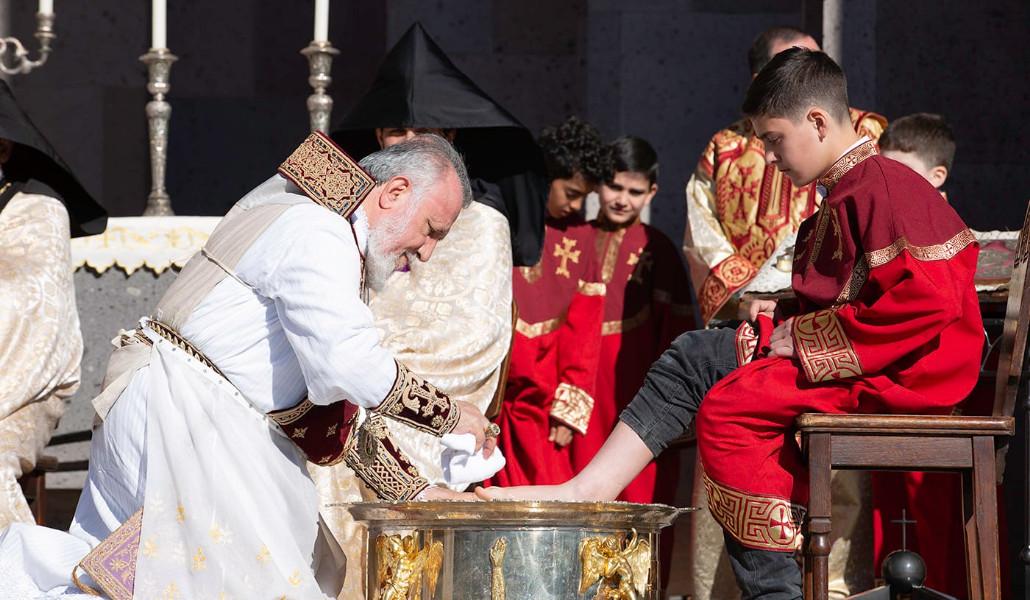 Հընթացս արարողության՝ սուրբգրային ընթերցումներից հետո, Ամենայն Հայոց Կաթողիկոսն օրհնեց խորանի վրա դրված ջուրն ու յուղը, ապա հոգեպարար շարականների երգակցության ներքո, Աստվածորդու օրինակով, լվաց և յուղով օծեց Մայր Աթոռի միաբաններ՝ Տ․ Եզնիկ արքեպիսկոպոս Պետրոսյանի, Տ․ Աթանաս աբեղա Սարգսյանի, Անդրե սարկավագ Համամջյանցի, Գևորգյան ճեմարանի Զ լսարանի սան Ավետիս սարկավագ Ավետիսյանի, ՀՀ ՊՆ N զորամասի ժամկետային զինծառայողներ Ազատ Զարգարյանի, Նվեր Քոչարյանի, «Էօրնեկեան» հանրակրթական դպրոցի աշակերտներ Արման Դավթյանի, Մկրտիչ Զոհրաբյանի, Մայր Աթոռի «Քյուրքչյան» երեխաների աջակցության կենտրոնի սան Մայիս Մնացականյանի, ինչպես նաև այլ մանուկների՝ Միքայել Զոհրաբյանի, Նարեկ Համամջյանցի, Էմիլ Սեդրակյանի Սպարտակ և Արթուր Փալիկյանների ոտքերը։