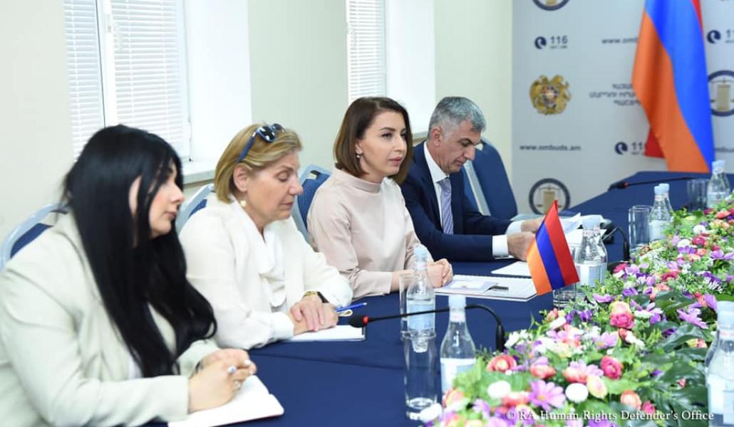 Պաշտպան Գրիգորյանը գործընկերներին է ներկայացրել Պաշտպանի հաստատության գործունեության առաջնահերթությունները, ընտանիքում բռնության դեմ պայքարի, կանանց հզորացման, կանանց և տղամարդկանց հավասարության ապահովման, խտրականության դեմ պայքարի ոլորտներում իրականացվող միջոցառումները։