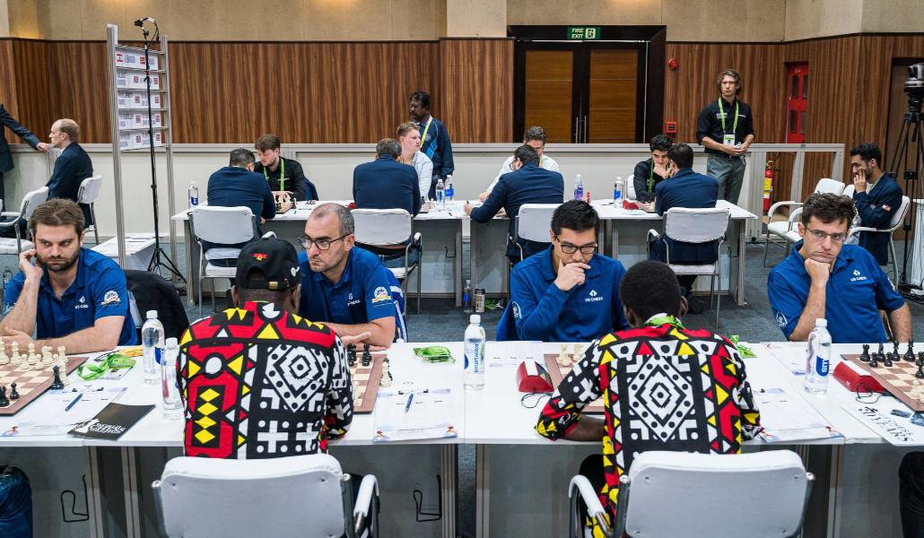 Մրցաշարի ֆավորիտ ԱՄՆ-ի ընտրանին, որի առաջին խաղատախտակին հանդես է եկել Լևոն Արոնյանը, 3,5:0,5 հաշվով պարտության է մատնել Անգոլային: Միակ ոչ-ոքին խաղացել է հենց մեր հայրենակիցը: