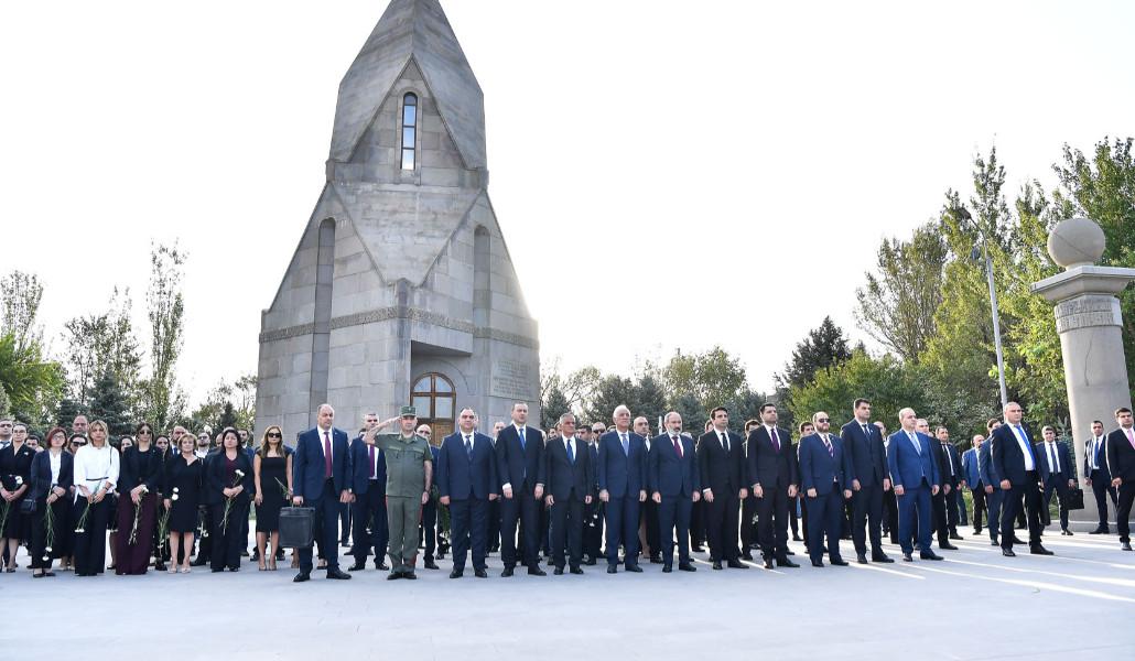 Վարչապետ Փաշինյանը ծաղիկներ է դրել Սպարապետ Վազգեն Սարգսյանի, Անդրանիկ Օզանյանի շիրիմներին և ծաղկեպսակ՝ հանուն Հայրենիքի կյանքը նվիրաբերած հայորդիների հիշատակը հավերժացնող հուշահամալիրին: