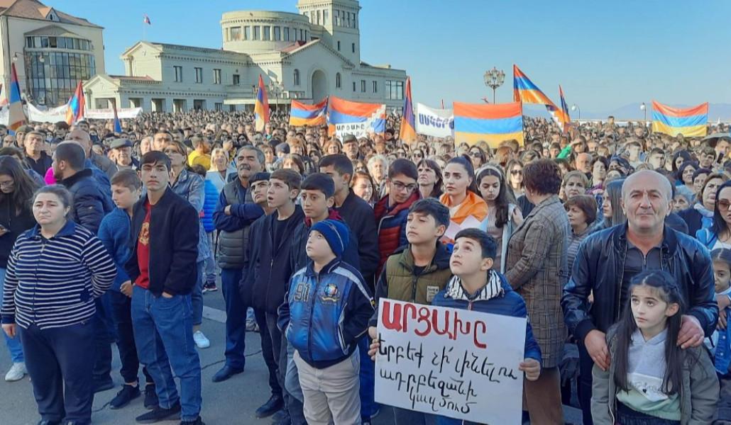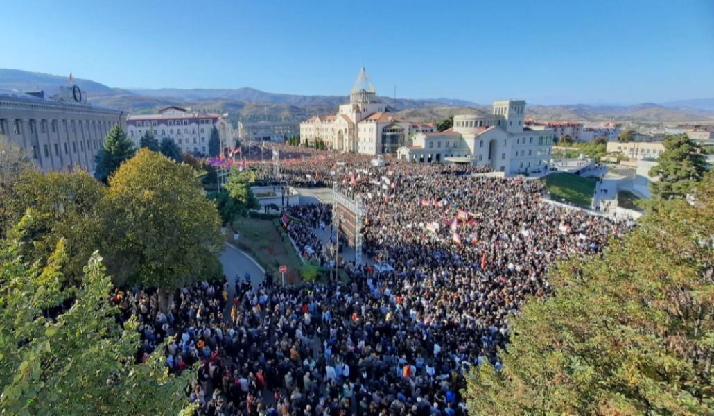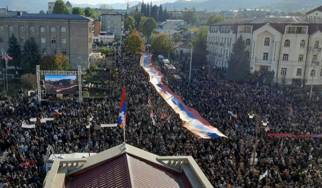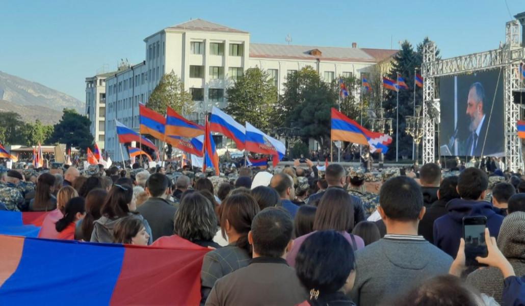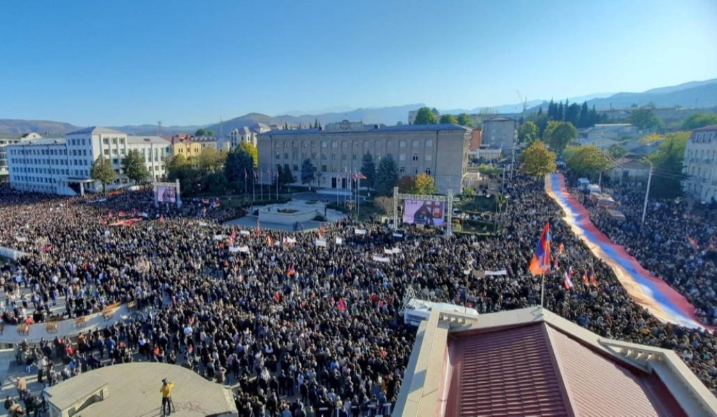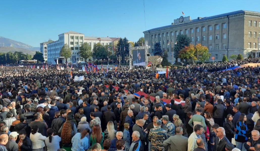 Աջակցիր «Ա1+»-ինԱրցախի Հանրապետության Ազգային ժողովի՝ հոկտեմբերի 30-ին հրավիրված արտահերթ նիստին զուգահեռ Ստեփանակերտի Վերածննդի հրապարակում կայացել է մեծ հանրահավաք: Ըստ Արցախի Աժ-ի՝ հանրահավաքին մասնակցել են Ստեփանակերտից և շրջաններից շուրջ 40,000 քաղաքացիներ։