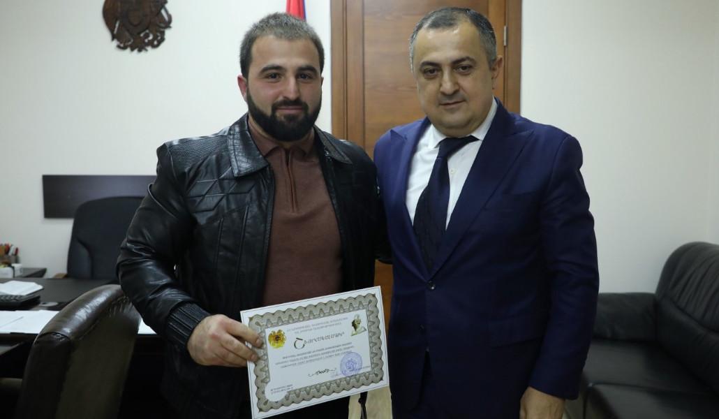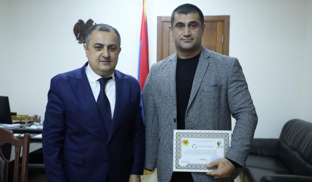ԿԳՄՍ նախարարի տեղակալը ֆիզիկական կուլտուրայի և սպորտի բնագավառում ունեցած նշանակալի ավանդի և 2022 թվականին ցուցաբերած բարձր մարզական նվաճումների համար մարզիկներին պարգևատրել է շնորհակալագրերով: