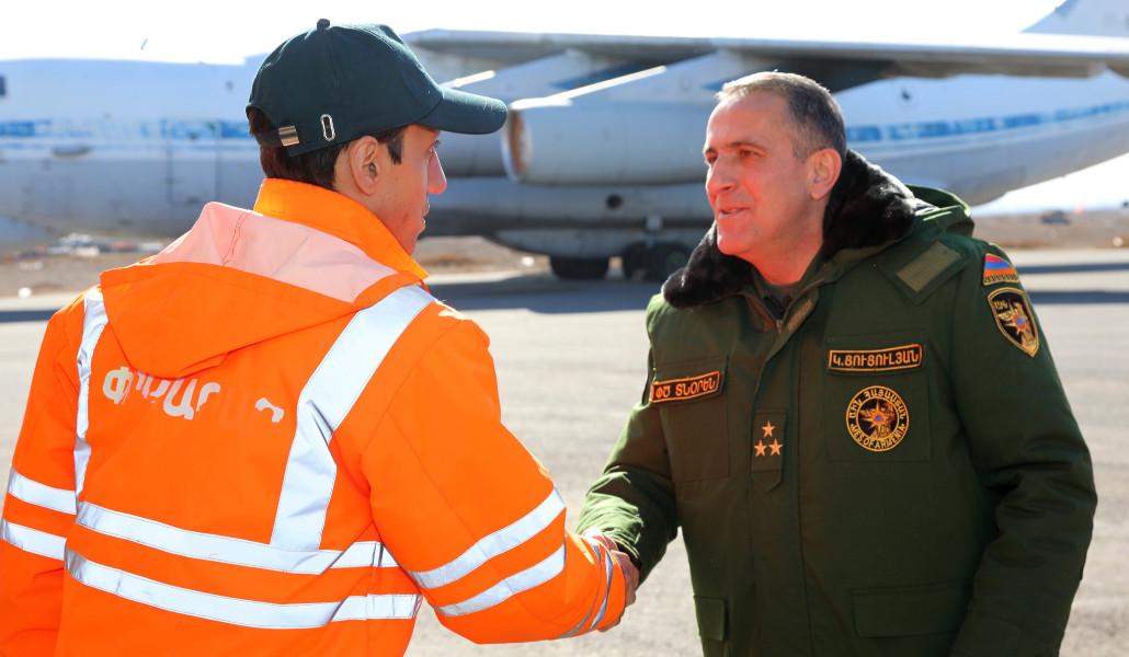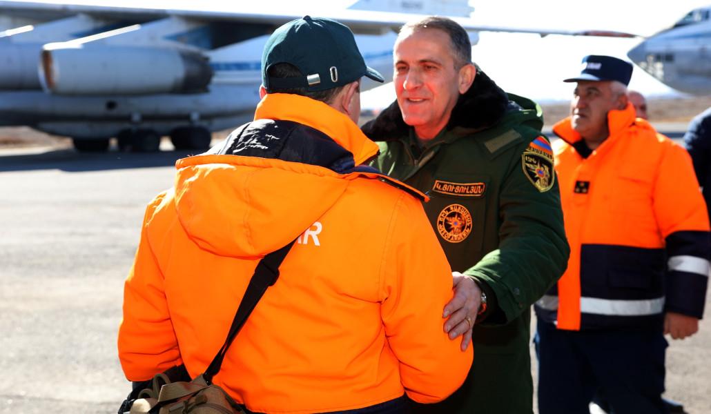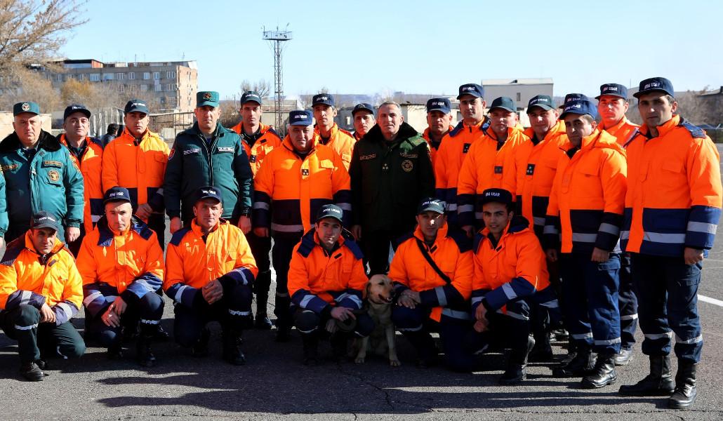 Նրանց դիմավորեցին ՆԳՆ փրկարար ծառայության տնօրեն-ներքին գործերի նախարարի տեղակալ, փ/ծ գնդապետ Կամո Ցուցուլյանը և ՆԳՆ փրկարար ծառայության տնօրենի տեղակալ, փ/ծ գնդապետ Տիգրան Պետրոսյանը: