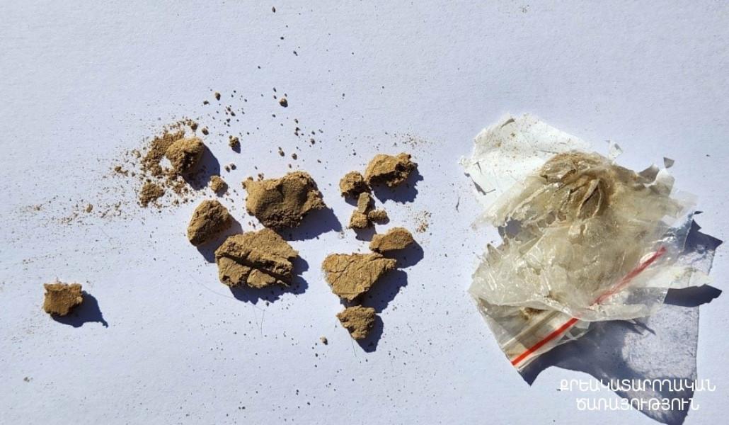Փաթեթի զննությամբ հայտնաբերվել են ընդհանուրը 7․55 գրամ շագանակագույն, փոշենման, կոշտացած զանգվածներ, 2 առանձին փաթեթներով, ընդհանուրը 41․49 գրամ քաշով մարիխուանա տեսակի թմրամիջոցին նմանվող կանաչ, մանրացված չոր զանգվածներ, բջջային հեռախոսի 6 մարտկոց և 4 բջջային հեռախոս, որոնցից 3-ը վնասվել են հեռակառարվող անօդաչու թռչող սարքի բարձր լինելու պատճառով։