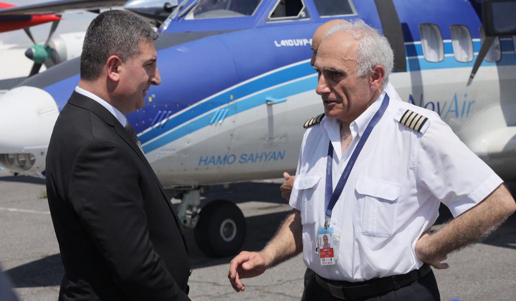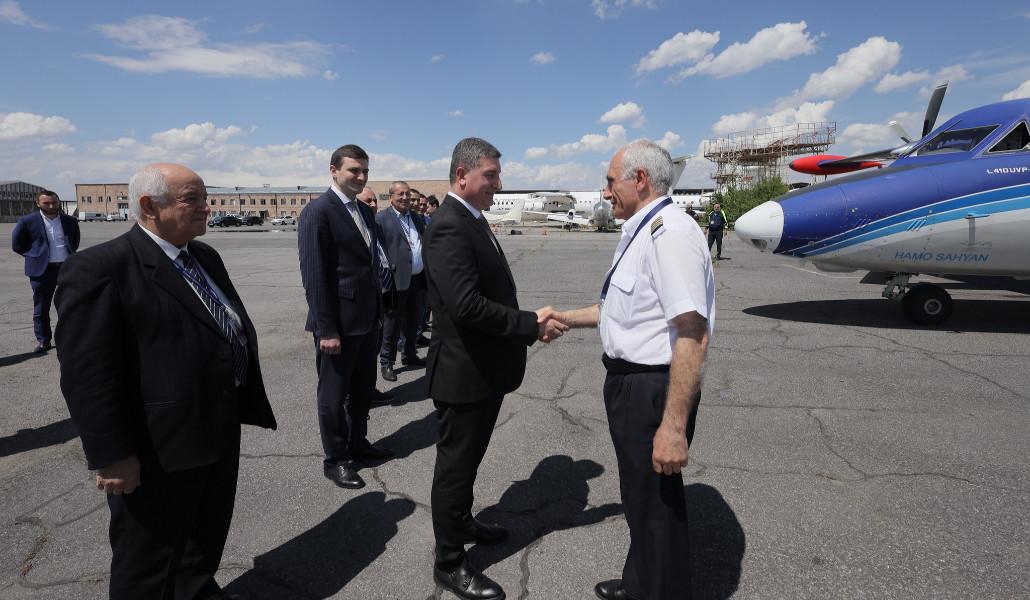 Գնել Սանոսյանը «Զվարթնոց» օդանավակայանում դիմավորել է Երևան-Կապան-Երևան փորձնական թռիչք իրականացրած L410 օդանավը