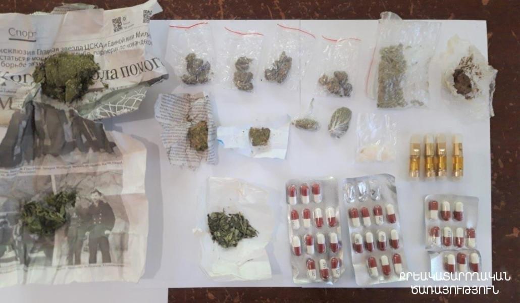 Փաթեթում առկա են եղել մեծ քանակությամբ առանձնացված այլ փաթեթներ՝ ընդհանուր 34,1 գրամ քաշով, տարբեր տեսակի թմրանյութերին նմանվող զանգվածներով, դեղապատիճներով և կասկածելի հեղուկներով: Մասնավորապես՝ մարիխուանա տեսակի թմրամիջոցին նմանվող, 28,3 գրամ քաշով դեղնականաչավուն զանգված, ափիոն տեսակի թմրամիջոցին նմանվող, 4,5 գրամ քաշով դարչնագույն զանգված, մեթամֆետամին տեսակի թմրամիջոցին նմանվող, 1,3 գրամ քաշով սպիտակ, բյուրեղանման զանգված, ինչպես նաև՝ 35 հատ «PGN-300» գրառմամբ, լիրիկա տեսակի հոգեմետ դեղապատիճ և 4 գլանակ՝ սուր հոտ ունեցող կասկածելի հեղուկով: