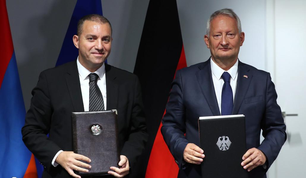 Հայկական կողմից համաձայնագիրը ստորագրեց ՀՀ էկոնոմիկայի նախարար Վահան Քերոբյանը, իսկ գերմանական կողմից՝ Գերմանիայի Դաշնային Հանրապետության արտակարգ և լիազոր դեսպան Վիկտոր Ռիխտերը։
