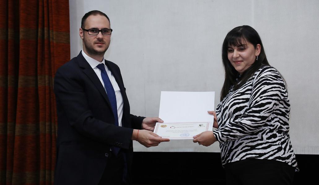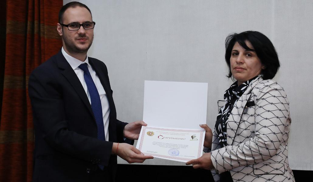 Պարգևները հանձնել է ՀՀ ԿԳՄՍ նախարարի տեղակալ Ալֆրեդ Քոչարյանը: