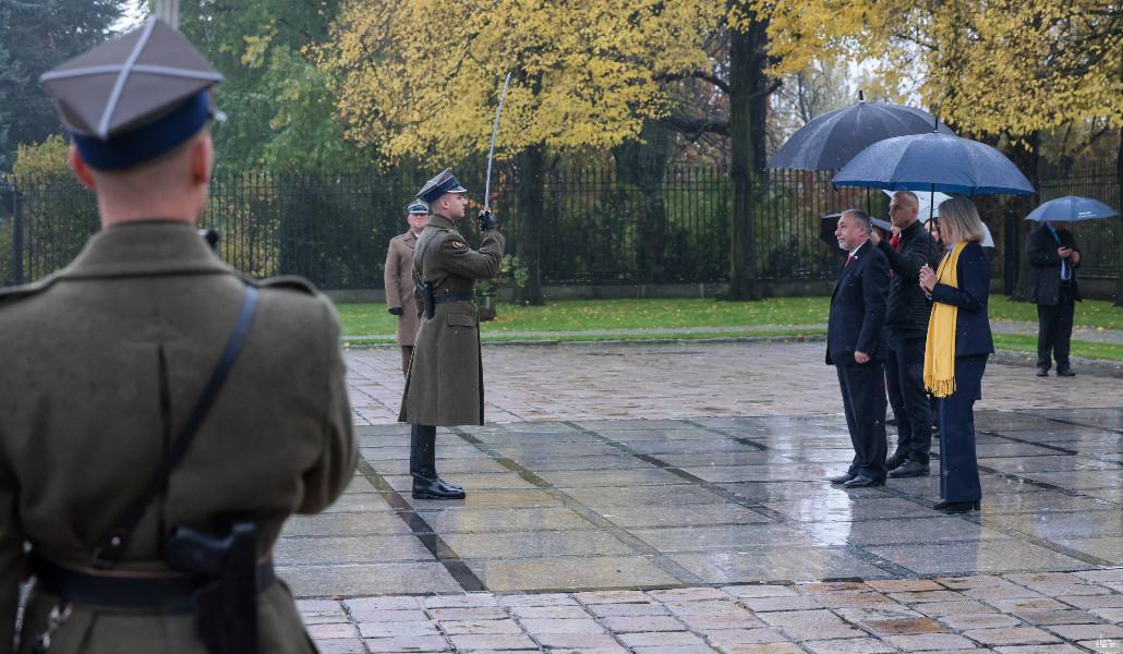 Հանդիսավոր արարողության ավարտին դեսպան Ալեքսանդր Արզումանյանն այցելել է Անհայտ զինվորի շիրիմ-հուշարձան, ծաղկեպսակ զետեղել և հարգանքի տուրք մատուցել Լեհաստանի համար զոհված զինվորների հիշատակին: