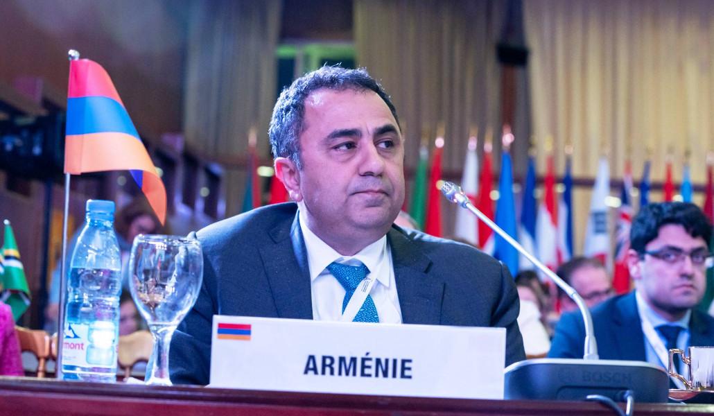 Ելույթի ընթացքում նախարարի տեղակալն անդրադարձել է նաև սեպտեմբերի 19-ին Լեռնային Ղարաբաղի դեմ Ադրբեջանի սանձազերծած լայնածավալ ռազմական հարձակմանը և Ադրբեջանի էթնիկ զտումների քաղաքականությանը։ Նա հիշեցրել է, որ Հայաստանն այսօր նշանակալի ջանքեր է գործադրում Լեռնային Ղարաբաղից բռնի տեղահանված ավելի քան 100 հազար փախստականներին, այդ թվում՝ 30 հազար երեխաներին, արժանապատիվ ընդունելություն ցույց տալու և առաջնային կարիքները հոգալու նպատակով։