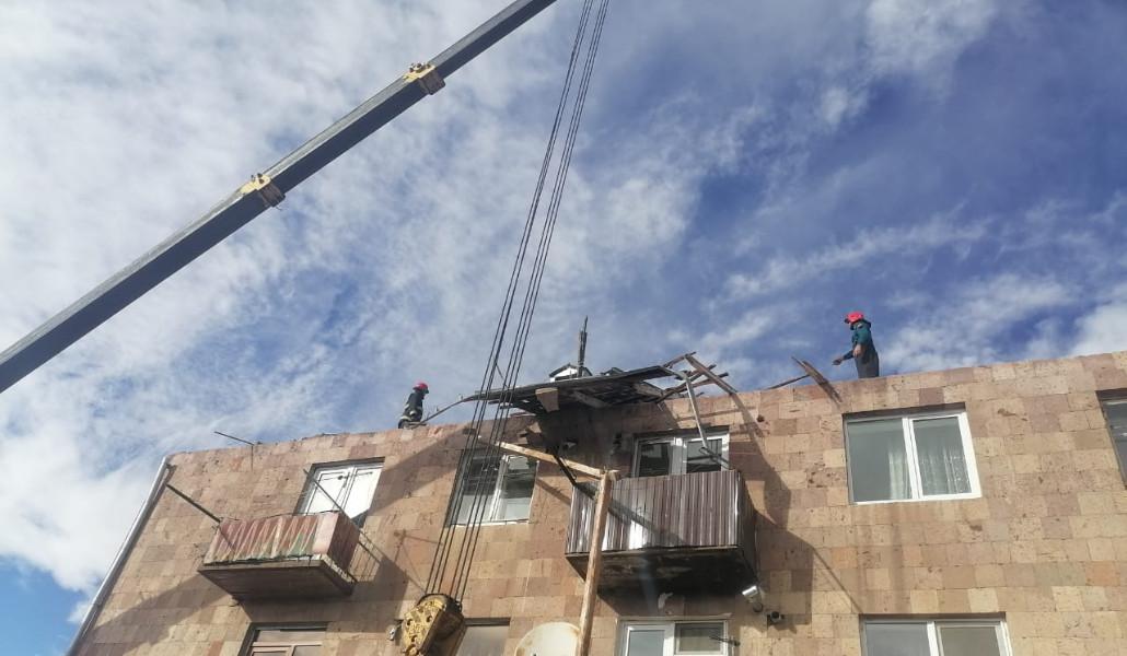 Փրկարարները հատուկ տեխնիկայի օգնությամբ ապամոնտաժել են կախված թիթեղները: