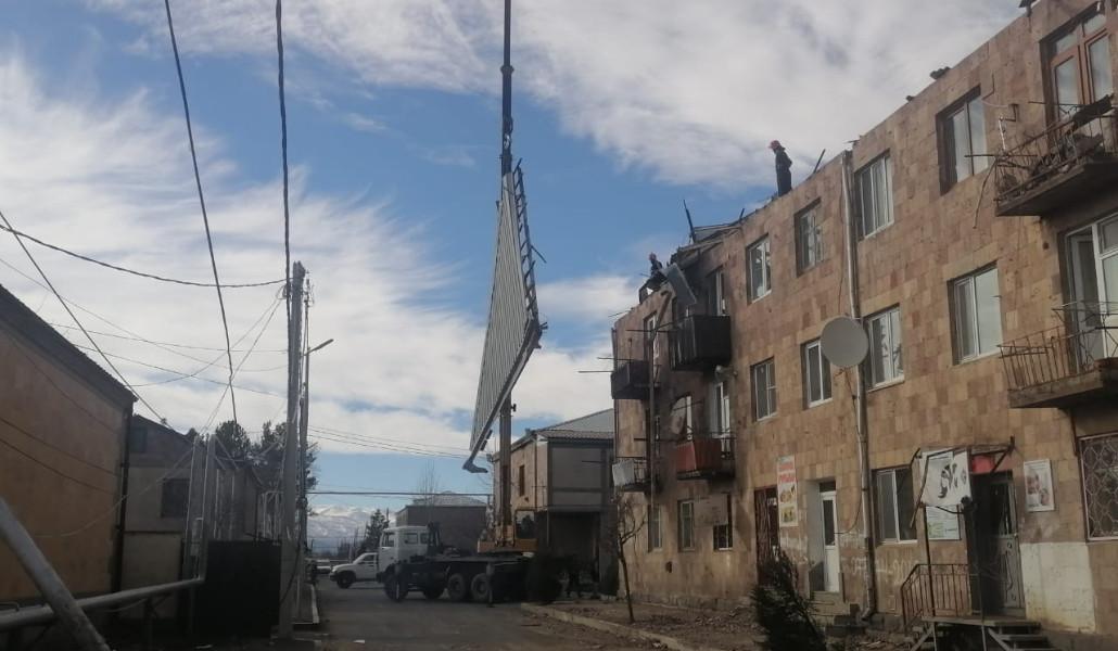 Պարզվել է, որ ուժեղ քամուց շենքի տանիքի թիթեղյա ծածկից մոտ 300 քմ հատված պոկվել և կախվել է. առկա է ընկնելու վտանգ: