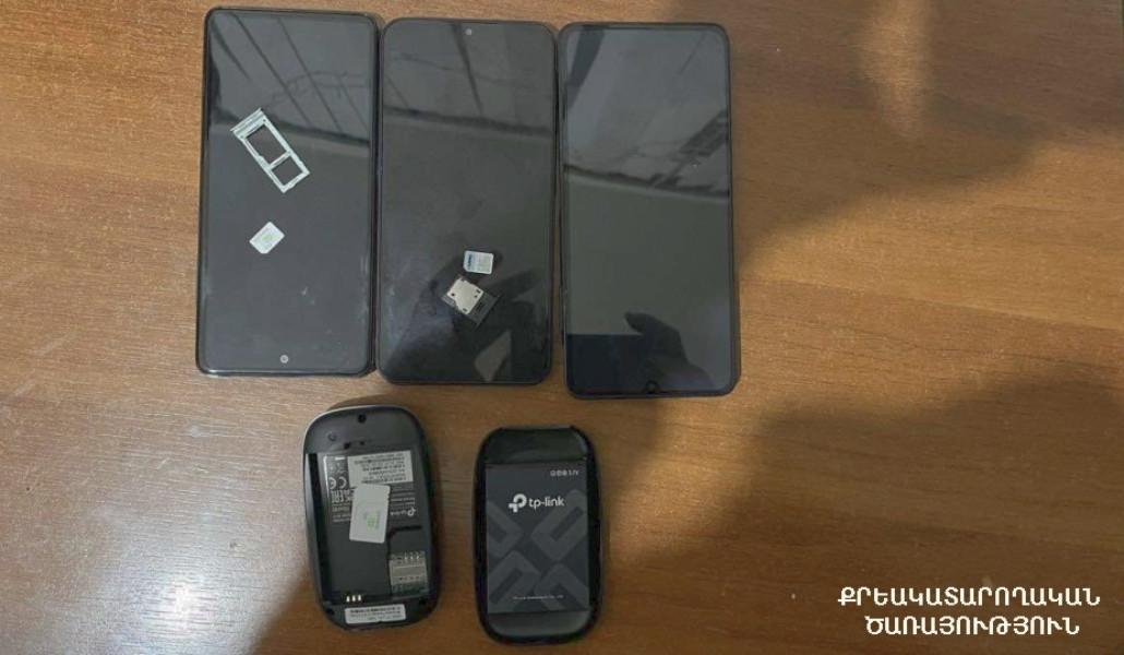 Խուզարկության արդյունքում ծառայողները Կ․Մ․-ի մոտից հայտնաբերել են 3 բջջային հեռախոս՝ իրենց բաժանորդային քարտերով, և wi-fi սարք, որոնք Կ․Մ․-ն թաքցրել էր գոտկատեղում։