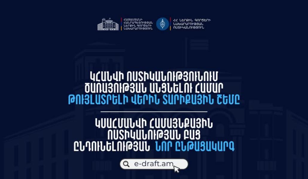 Ոստիկանության բարեփոխումների շրջանակներում Ներքին գործերի նախարարության կողմից շրջանառության է դրվել «Ոստիկանությունում ծառայության մասին» օրենքում փոփոխություններ և լրացումներ կատարելու մասին» օրենքի նախագիծը, որի ընդունման արդյունքում․
