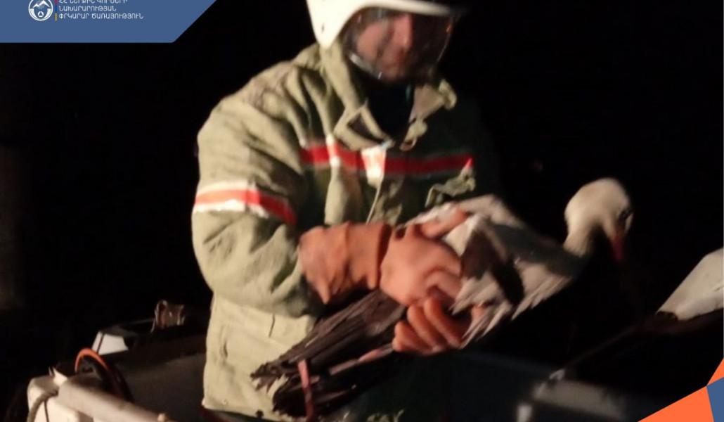 Փրկարարներն արագիլին դուրս են բերել արգելափակումից