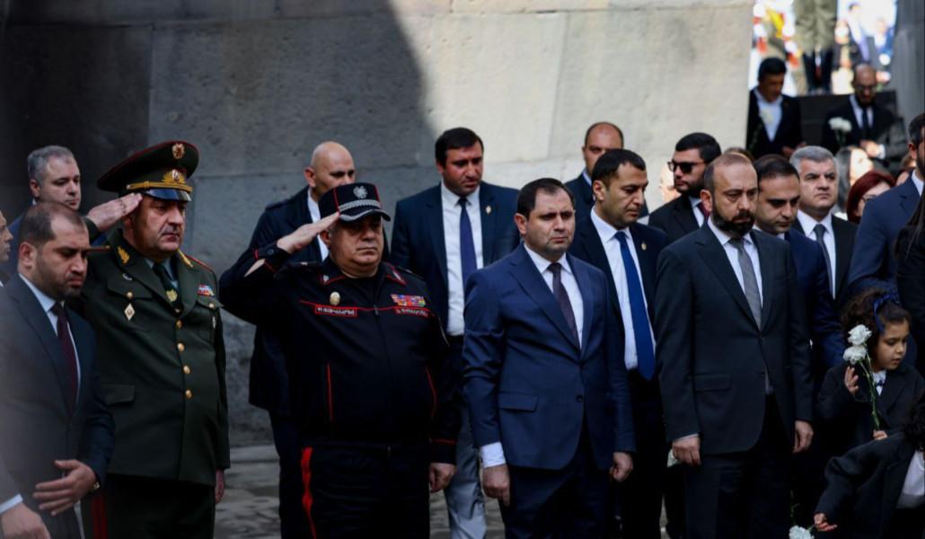 ՀՀ բարձրագույն ղեկավարությունը ծաղկեպսակներ է դրել հուշակոթողին, ծաղիկներ խոնարհել Հայոց ցեղասպանության զոհերի հիշատակը հավերժացնող անմար կրակի մոտ: