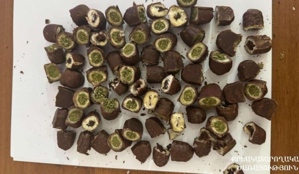 Հանձնուքում առկա շոկոլադե կոնֆետներից 45-ի միջից ծառայողները հայտնաբերել են մարիխուանա տեսակի թմրամիջոցին նմանվող, դեղնականաչավուն զանգվածներ, որոնց քաշը կոնֆետների հետ միասին կազմել է 264,94 գրամ։ Իսկ 27 կոնֆետի միջից հայտնաբերվել են թմրամիջոցի նմանվող, սպիտակ զանգվածներ, որոնց քաշը կոնֆետների հետ միասին կազմել է 142,95 գրամ։