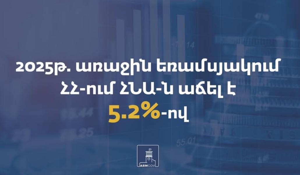 2025 թ․ առաջին եռամսյակում Հայաստանում ՀՆԱ-ն աճել է 5.2%-ով