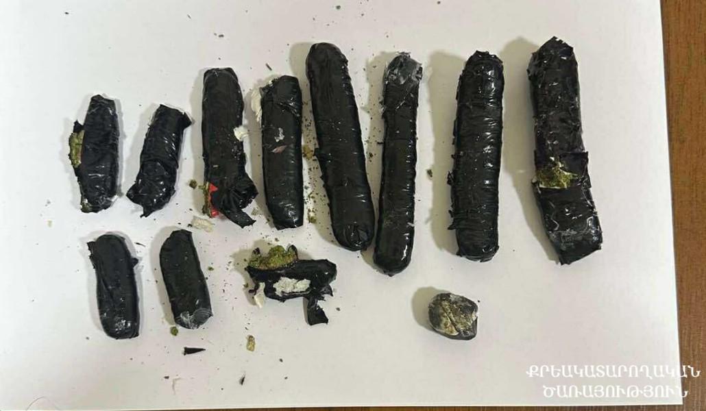 Հանձնուքում առկա սպորտային կոշիկների ներբանի և միջատակի արանքից ծառայողները հայտնաբերել են 12 փաթեթ, որոնց մեջ առկա է եղել մարիխուանա տեսակի թմրամիջոցին նմանվող, ընդհանուր 52,28 գրամ քաշով, դեղնականաչավուն զանգված։
