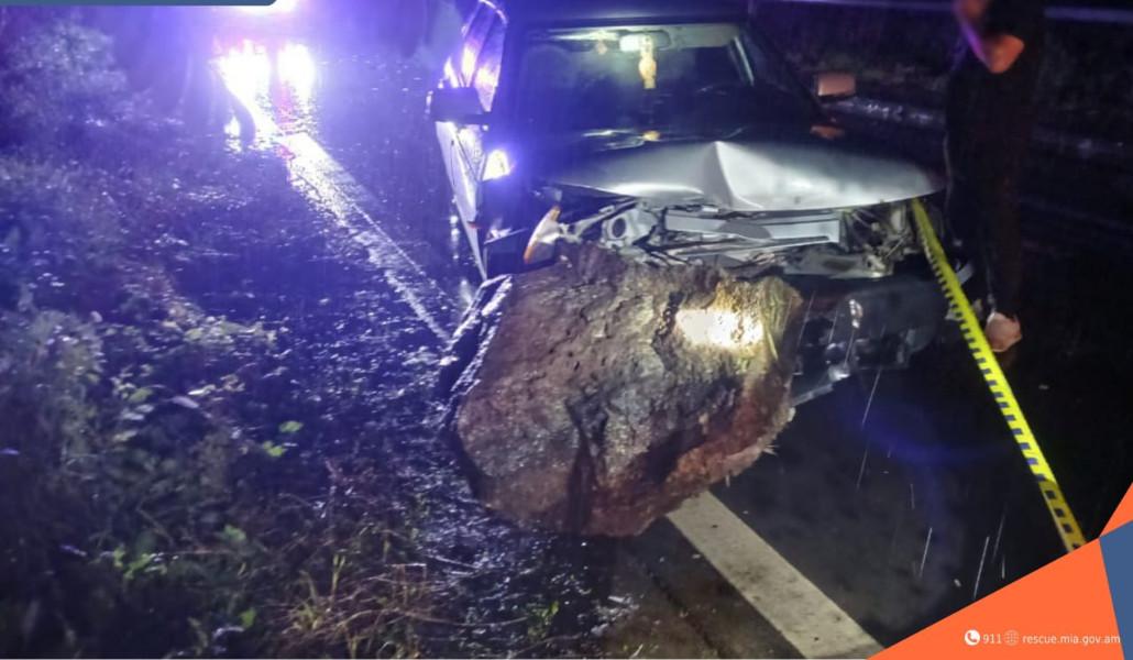 Փրկարարները ճանապարհից հեռացրել են քարը և ավտոմեքենան դուրս բերել երթևեկելի հատվածից․ երթևեկությունը վերականգնվել է։