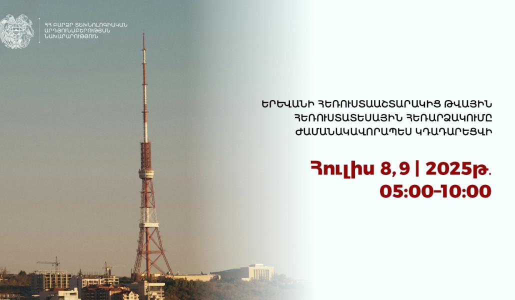 Երևանի հեռուստաաշտարակից թվային հեռուստատեսային հեռարձակումը ժամանակավորապես կդադարեցվի