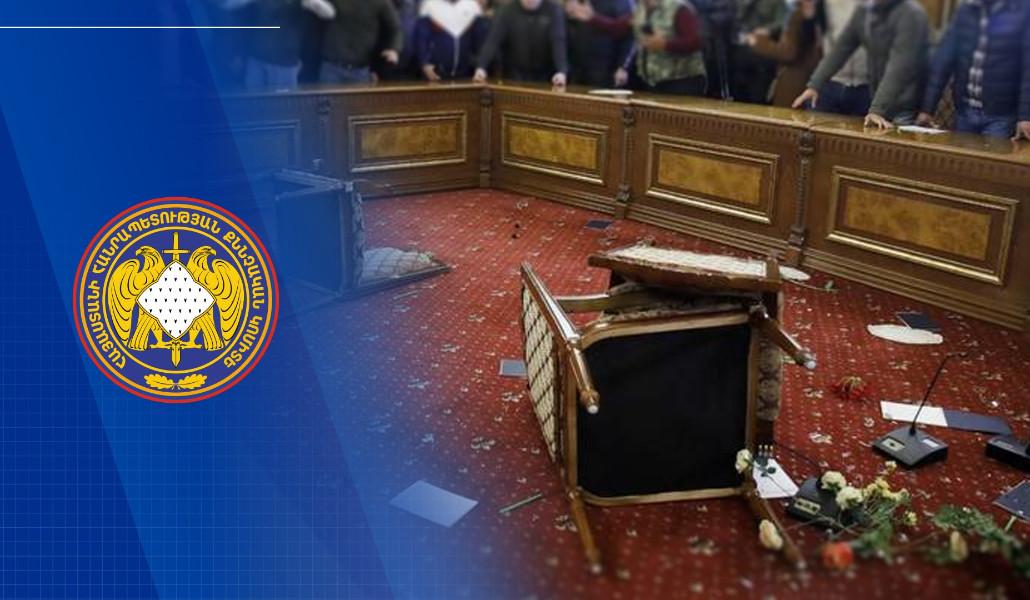 Նախաքննության ընթացքում պարզվել է, որ զանգվածային անկարգությունների ժամանակ դրա մասնակիցների կողմից ՀՀ կառավարության, Ազգային ժողովի շենքերում գտնվող աշխատասենյակներից և շինություններից, ինչպես նաև ՀՀ վարչապետին հատկացված ծառայողական առանձնատնից բացահայտ հափշտակվել են առանձնապես խոշոր չափերով տարատեսակ գույք, ոսկյա զարդեր, այդ թվում՝ դրամական միջոցներ, ինչպես նաև անձնական այլ շահագրգռվածությունից ելնելով հափշտակվել են կարևոր և պաշտոնական այլ փաստաթղթեր: