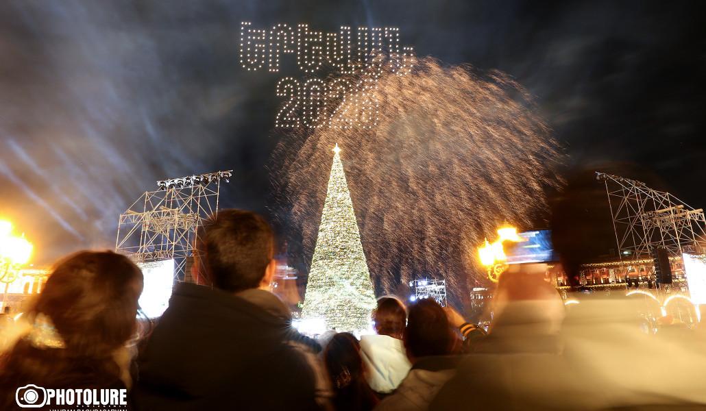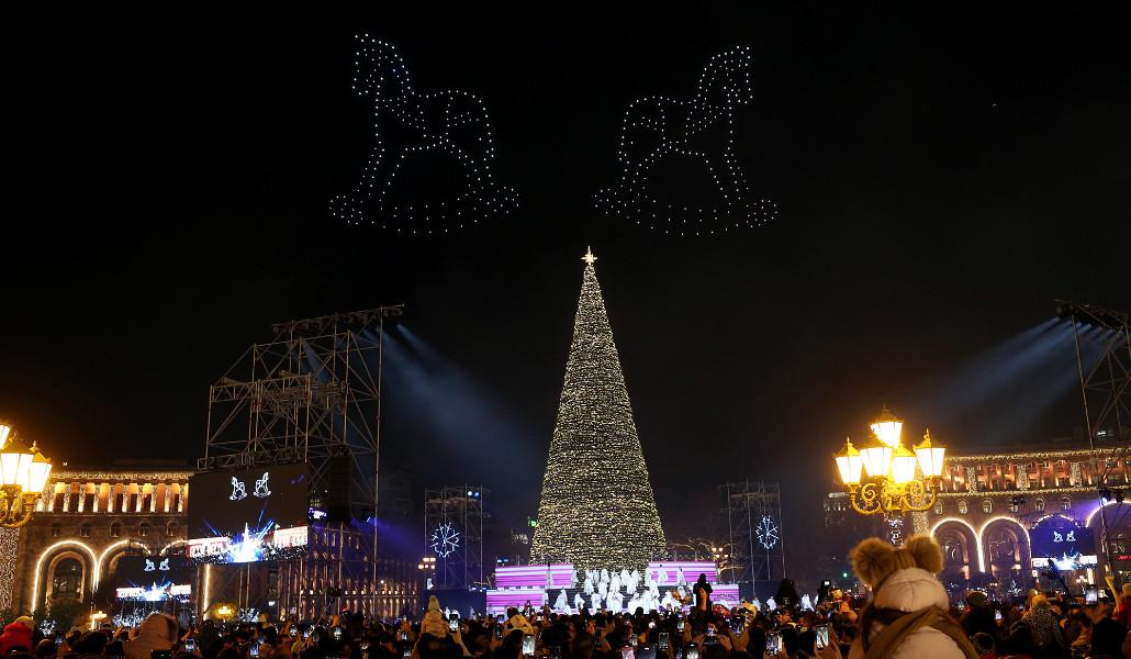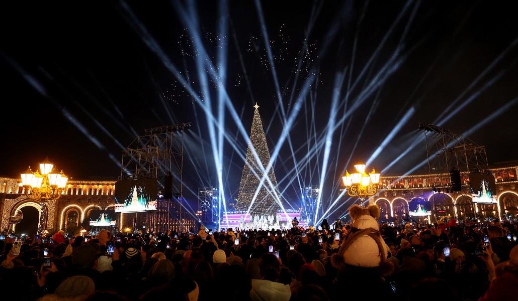 Վառվեցին Երևանի գլխավոր տոնածառի լույսերը (տեսանյութ)