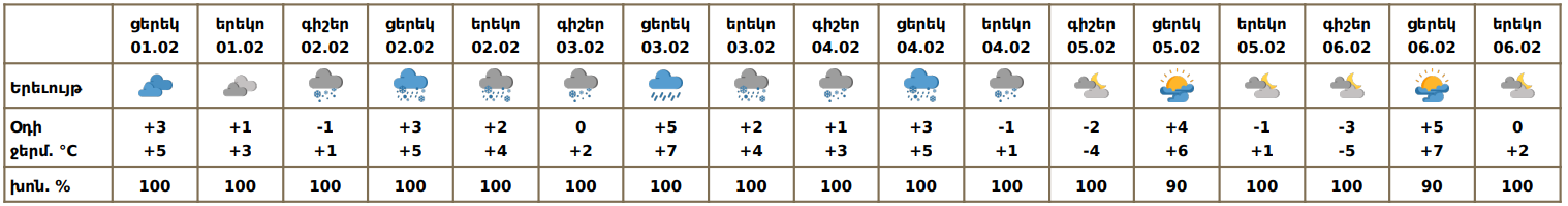 Փետրվարի 5-6-ին սպավում է առանց տեղումների եղանակ։
