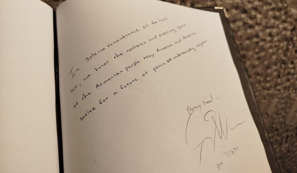 ԱՄՆ փոխնախագահը գրառում է կատարել Հայոց ցեղասպանության թանգարանի Պատվավոր հյուրերի հուշամատյանում (լուսանկարներ)